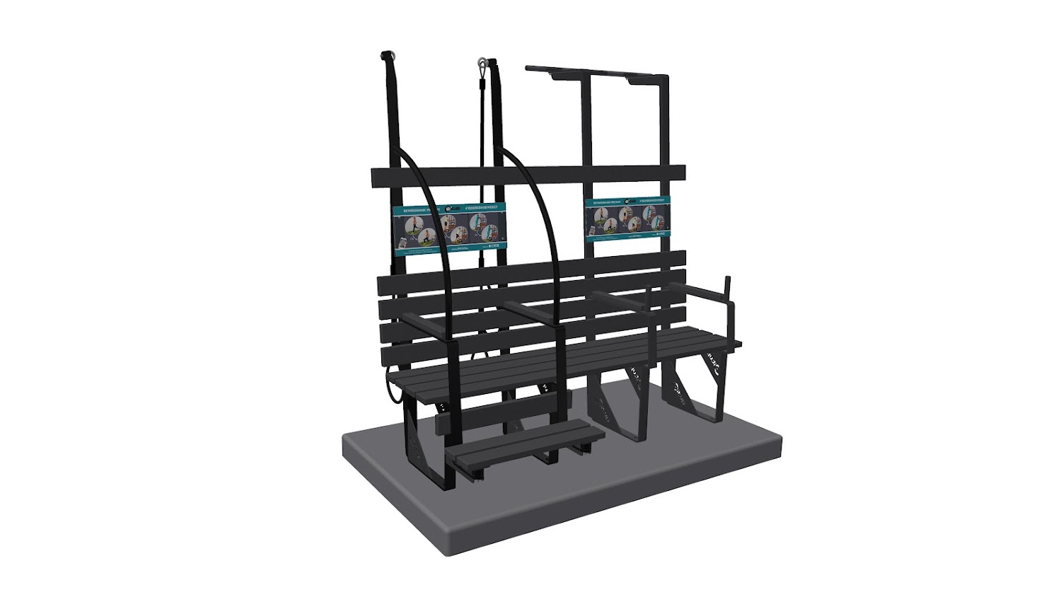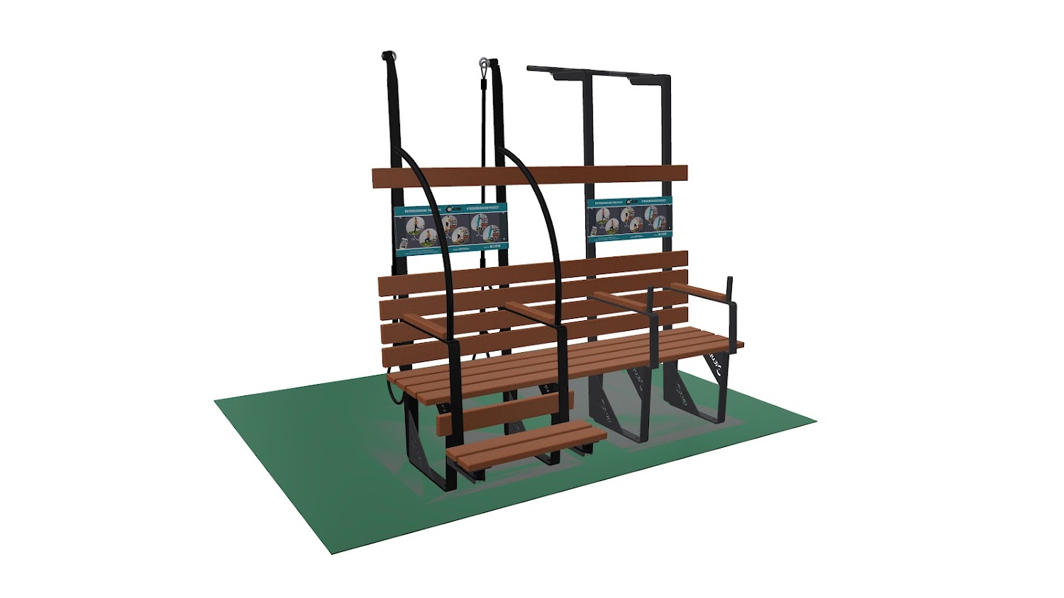 Retrouver sur chaque banc un panneau d’informations intégré affichant les images différents exercices de base, accessibles à tous .