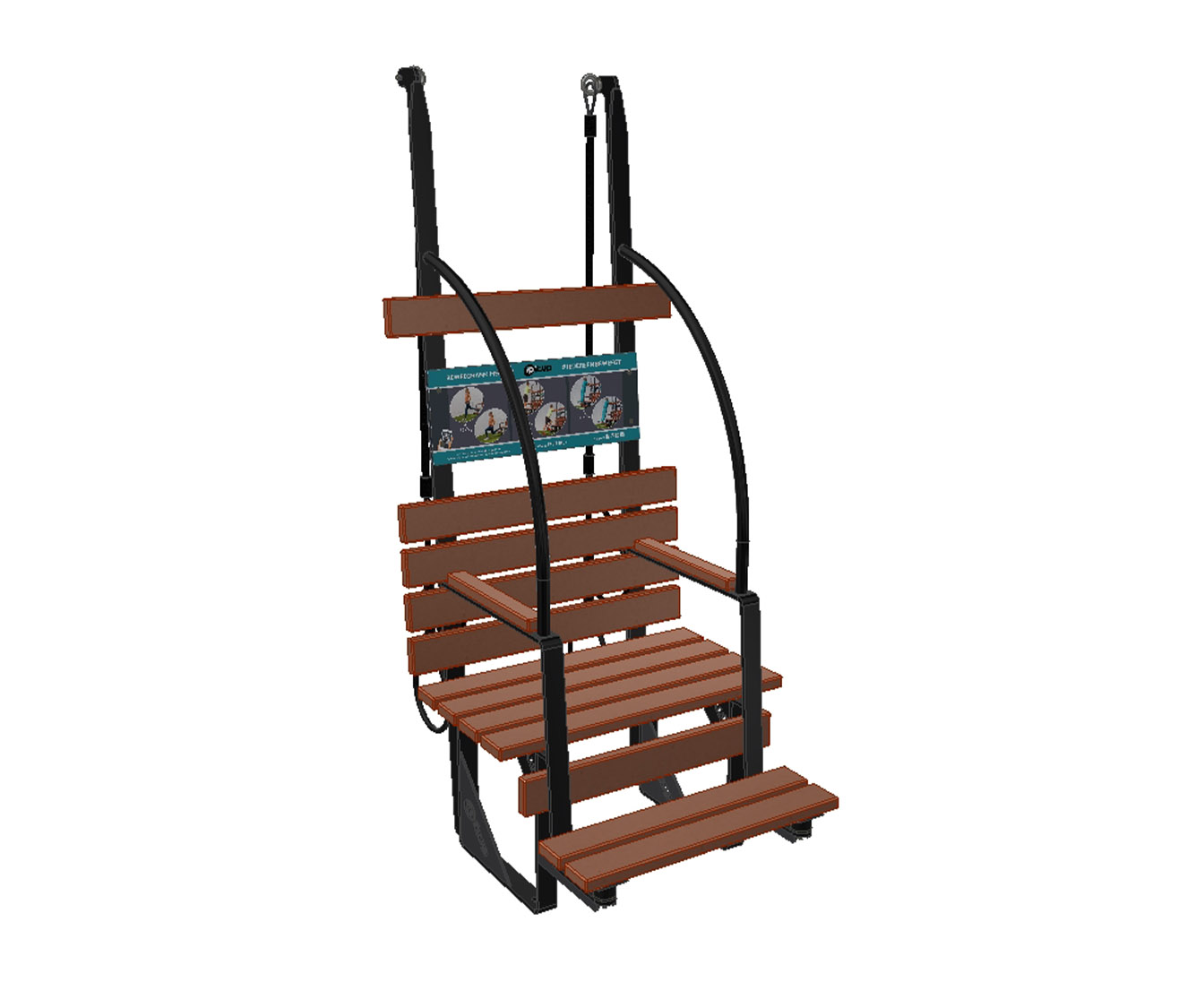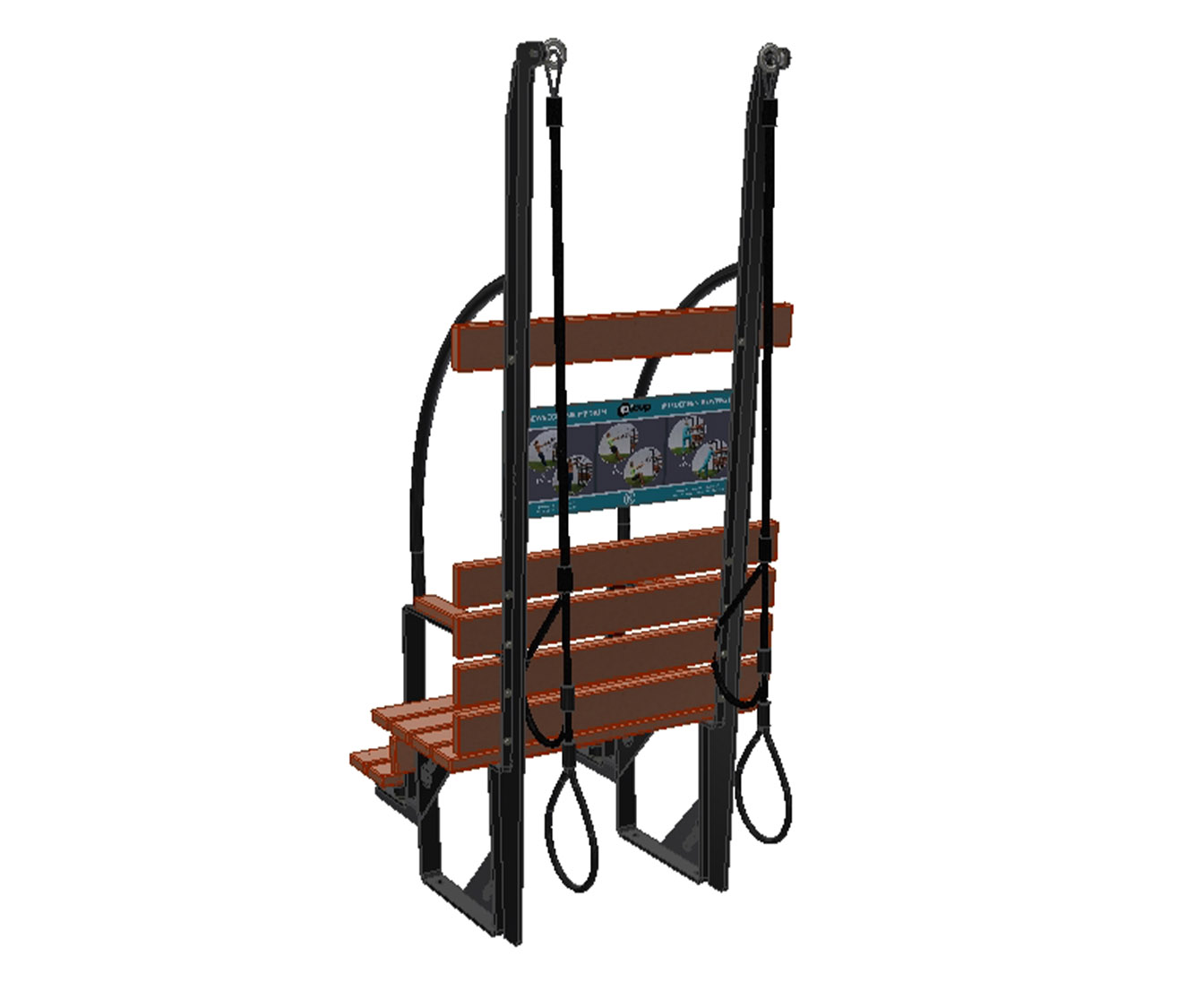 Retrouver sur chaque banc un panneau d’informations intégré affichant les images différents exercices de base, accessibles à tous .